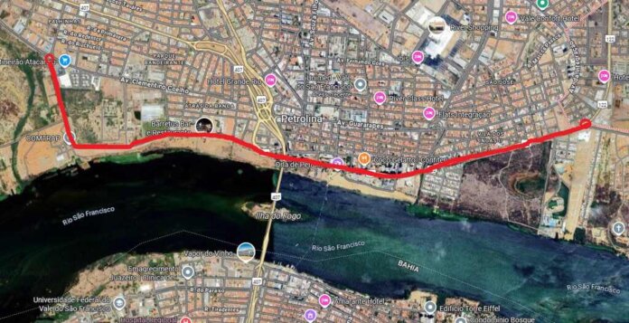 – Opção recomendada: seguir pela Travessa da Maravilha, acessar a Banca (BR-407), continuar pelo bairro Piranga e retornar pela Avenida Airton Sena, no bairro Jardim Flórida, em direção ao Santo Antônio.